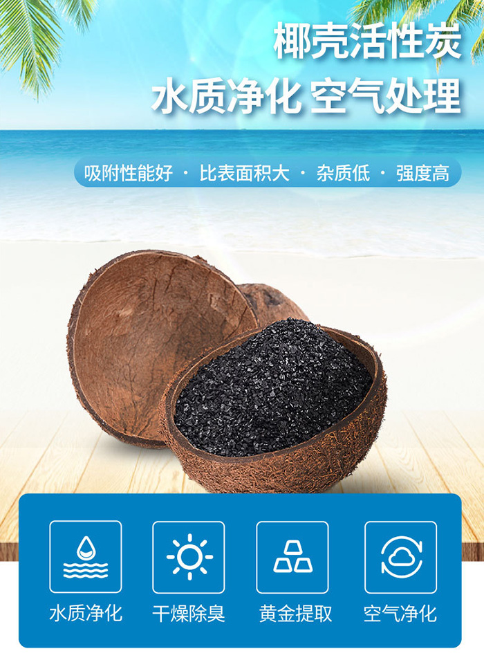 椰壳活性炭主要用于食品、饮料、医药、酒类、空气净化和高纯饮用水的除臭、去除水中重金属、除氯及液体脱色。并可广泛用于化学工业的溶剂回收和气体分离等。